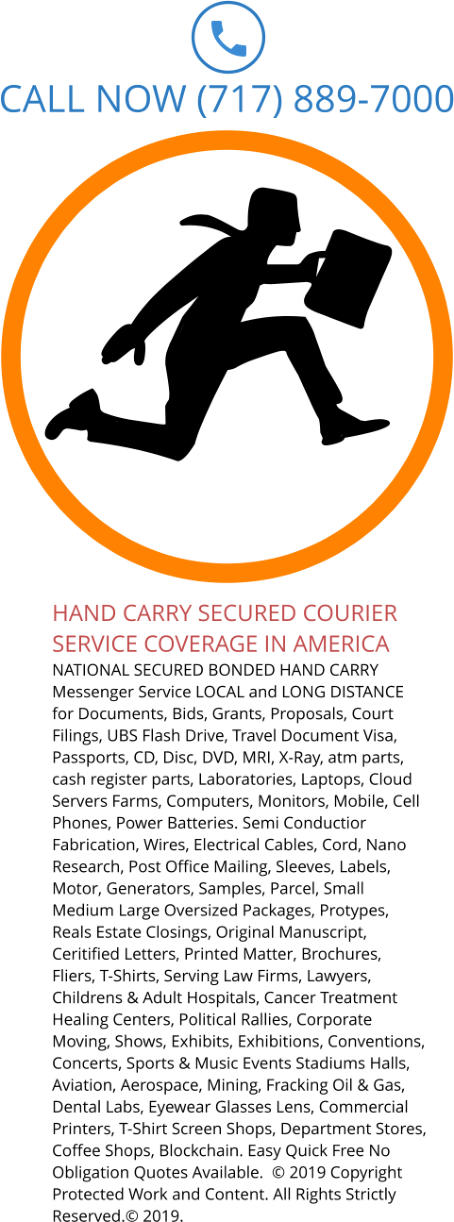 products expedited delivery? Yes, we can help. Need your medical emergency surgery device surgical tote instruments tools pharmaceutical pharma ingredients and finished products deliery on an emergency basis? Yes we can help. Worried about your bids, documents, confidential usb flash drive, rfi, grants and proposals making your deadline. Yes we can help. Call us for a fast no obligation or pressure We welcome new business and customers and welcome back returning recurring ones. Need your missing ingredient or mis-routed shipment today. Yes, we can help you. Temperature controlled for special paint coating expedited non-stop same day delivery. Forgot your ticket? We can help. Need a hand carry air courier for electric power and auto manufacturing plants critical parts? Yes we can help, we are a verified local business with national reach and network offices on the left and right coasts and in anywhere and everywhere in between at anytime open today open 24 hours. We offer services you need and want, not like other guys who give you what you deserve. We strongly and firmly believe that we have decades of professional comprehensive combined skills and experience that qualifies to complete your tasks. You want a long distance company and local business that rated one of the best in the field that is highly recommended and trusted. Look no further you found us. You want positive results. We can help with proven efficient dependable anytime transportation solutions. During your search you will find transport information including official webpages images offices locations address terminals fast contact information phone numbers local courier delivery business documents view maps and driving directions places video air courier messenger hand carry delivery logistics shipping mailing moving air freight cargo motor trucking domestic cargo airlines next flight out temperature control reefer intermodal inter modal intramodal intra modal intrastate interstate inter states usa intra state usa will call pickup same day delivery service auto power plant parts delivery Bonded Same Day Courier Service, Dependable Transportation Service, Secure Shipping Company, High Value Expedited Shipping Service, Highly Sensitive Same Day Delivery Services, Nationwide Shipping and Mailing Service, Coast to Coast Trucking Company, Cross Country Freight Forwarding Service, Premium Comprehensive Logistics, private banking delivery service, executive delivery service, express delivery, legal court filing hand delivery services, Rush Messenger Services, On-Demand Logistics Service, high confidential usb flash drive deliver service, original or certified notorized documents delivery service, Exclusive Moving Company, Corporate Moving and Storage Company, Parcel Service, Commercial Postal Service, Construction Job Site Delivery Service, Private Messenger Service, local delivery business, rescues for delayed or mis-routed shipments stranded at seaport, aiports, ports, trucking terminals docks, linehaul, direct point to point, open now today 24 Hours including holidays and weekends, exclusive non-stop long distance expedited services, on-demand airport pickup and deliveries, emergency medical delivery, time definite life sciences deliveries, aog, airport aircraft on the ground pick up and delivery for commercial or private jet charter, deadline residential or commercial couriers. We have specialized expertise and features to help your find the right courier express solutions for exactly what you are looking for now fast quick rapid and on-demand.Proudly serving with AL Courier Service | MT Courier Service | AK Courier Service | NE Courier Service | AZ Courier Service | NV Courier Service | AR Courier Service | NH Courier Service | CA Courier Service | NJ Courier Service | CO Courier Service | NM Courier Service | CT Courier Service | NY Courier Service | DE Courier Service | NC Courier Service | FL Courier Service | ND Courier Service | GA Courier Service | OH Courier Service | OK Courier Service | OR Courier Service | IL Courier Service | PA Courier Service | IN Courier Service | RI Courier Service | IA Courier Service | SC Courier Service | KS Courier Service | SD Courier Service | KY Courier Service | TN Courier Service | LA Courier Service | TX Courier Service | ME Courier Service | UT Courier Service | MD Courier Service | VT Courier Service | MA Courier Service | VA Courier Service | MI